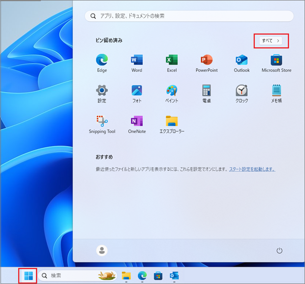 1.画面左側のスタートボタンをクリックし「すべて」を選択します。