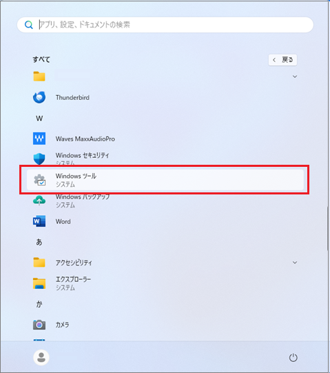 1.画面左側のスタートボタンをクリックし「すべてのアプリ」を選択します。