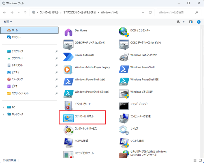 2)画面左下に表示されるショートカットメニューから「コントロールパネル」を選択します。