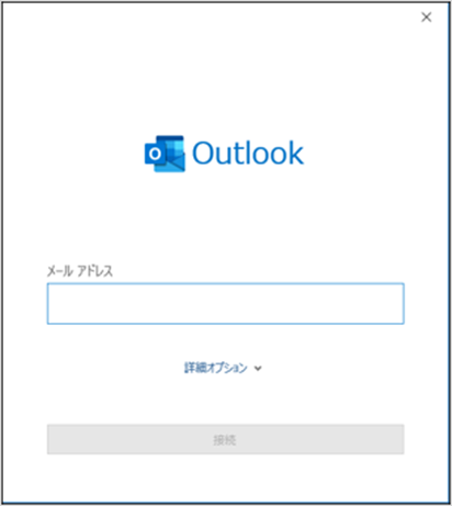 【Outlook】画面が表示されます。入力欄にメールアドレスを入力し【詳細オプション】をクリックします。