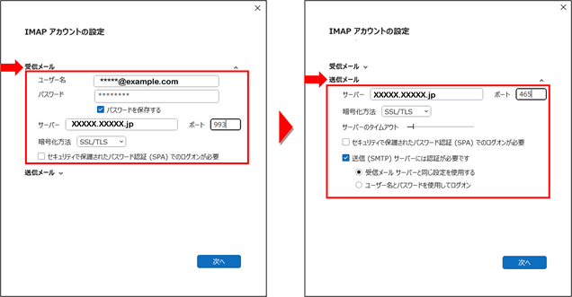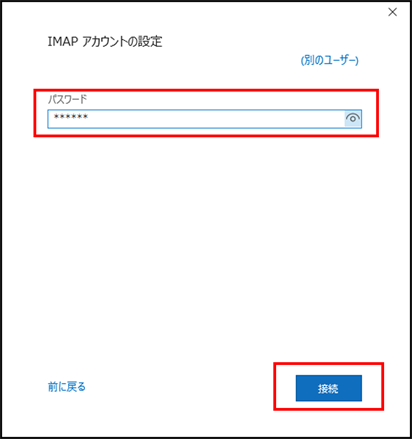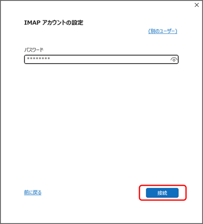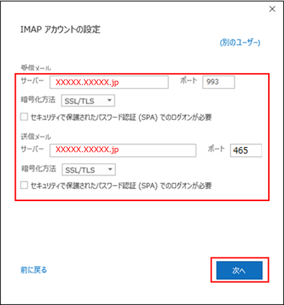 ※項番4で【IMAPアカウントの設定】が表示されない場合、自動で値が入っている場合があるため設定情報を確認してください。