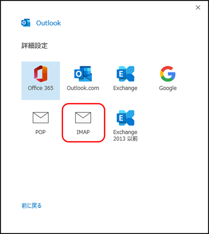 メールソフトの設定方法(Outlook(classic) IMAP_SSL)
