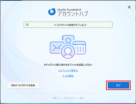 「メールアカウントの接続が完了しました」を表示されたら、【完了】を選択します。