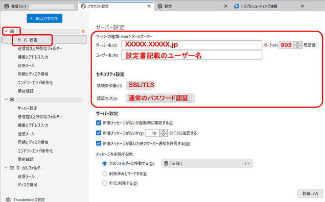 メールソフトの設定方法(Thunderbird【ver146.0.1】IMAP_SSL)