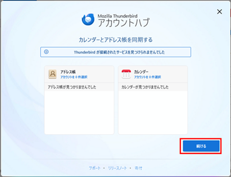 カレンダーやアドレス帳の同期は任意です。【続ける】を選択します。