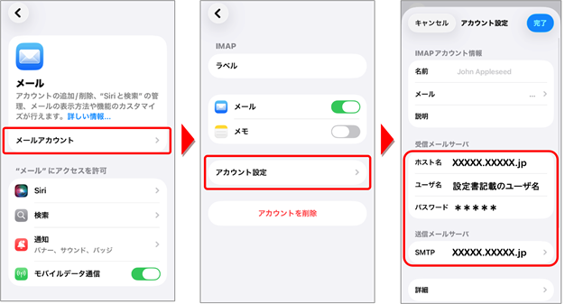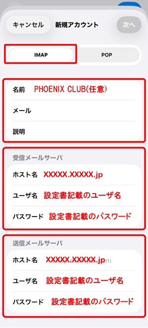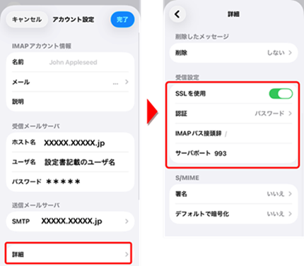 メールに関するサポート情報(iPhoneのメール設定方法、(IMAP_SSL))