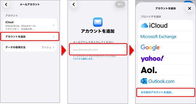 -「メール」:手順2で入力したメールアドレスが表示されます