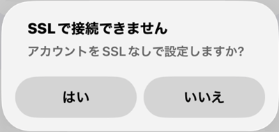「SSLで接続できません」と表示されたら、【はい】を選択します。